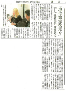 Home › 『神奈川新聞』2025年8月7日付 2025-08-15 『神奈川新聞』2025年8月7日付 関連記事 日吉地域九条の会からニュース59号が送られてきました。 「封鎖に抗する小さな穴-平和的生存権とガザ入域」の報告 2022年1月20日オンライン院内学習会「定住外国籍住民に地方参政権を」開催のお知らせ 憲法ネット103発足1周年記念シンポジウム 安倍政治を問う――9条・教育・沖縄―― 道南地域平和運動フォーラム・憲法学習会のお知らせ 2025.8.6開催「戦争は終わった戦争は続く」講演会報告